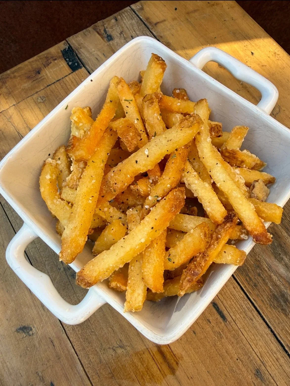 Hand-battered oyster mushrooms, fried until they're golden. Seasoned fries and fresh cornbread. Comes with dipping sauce. The essentials.